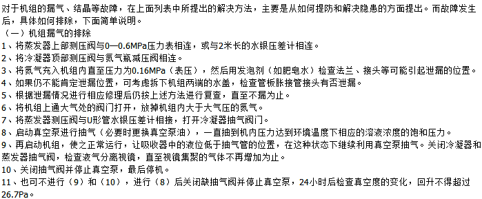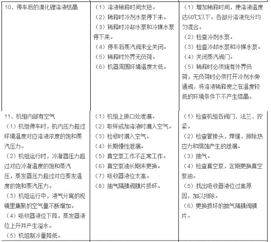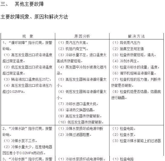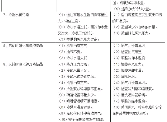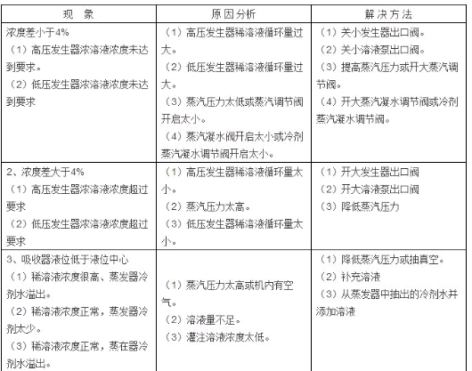 溴化鋰吸收式制冷機在運轉過程中,受到外界因素的影響和操作不當,會引出機組不能正常工作。使機組不能正常工作的常見故障有:突發(fā)性故障、運行參數調整不正常和其他主要故障。