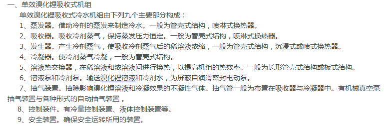 溴化鋰吸收式機(jī)組均由若干換熱器,并輔以屏蔽泵、真空閥門,管道、抽氣裝置、控制裝置等組合而成。盡管機(jī)組形式各異,但其主要構(gòu)成部分是相同的,僅是各部分所所的作用不同而已。