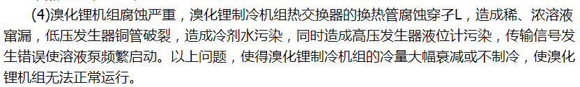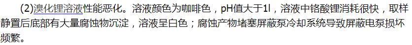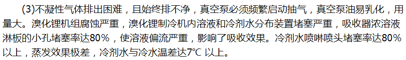 (1)機(jī)組運(yùn)轉(zhuǎn)時(shí)內(nèi)部各點(diǎn)壓力偏高,換熱器換熱不夠,均偏離了設(shè)計(jì)值,溴化鋰機(jī)組存有不凝性氣體,吸收的阻力增大,影響吸收器中的傳熱和傳質(zhì)過(guò)程,進(jìn)而影響溴化鋰機(jī)組的性能。