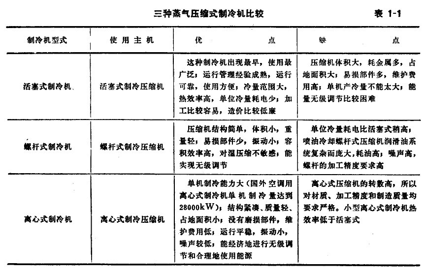 制冷設(shè)備--附三種壓縮式制冷機(jī)優(yōu)缺點(diǎn)對(duì)比圖(表1-1)
