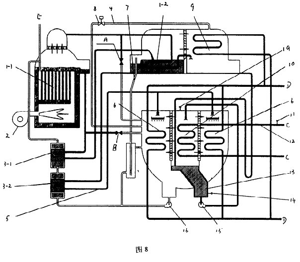 圖2—8為本實(shí)用新型的溴化鋰吸收式制冷機(jī)各實(shí)施例示意圖。