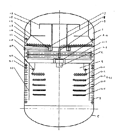 2、根據(jù)權(quán)利要求1所述的一種小型溴化鋰吸收式制冷機(jī),其特征在于:所述的低壓發(fā)生器(l)、冷凝器(2)和蒸發(fā)器(3)的傳熱管(1.1、2.1、3.1)均采用平面盤管。