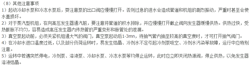 在機組運行中應(yīng)對發(fā)生器、吸收器及蒸發(fā)器的液位勤加觀察,即使是全自動控制的機組,也應(yīng)如此。